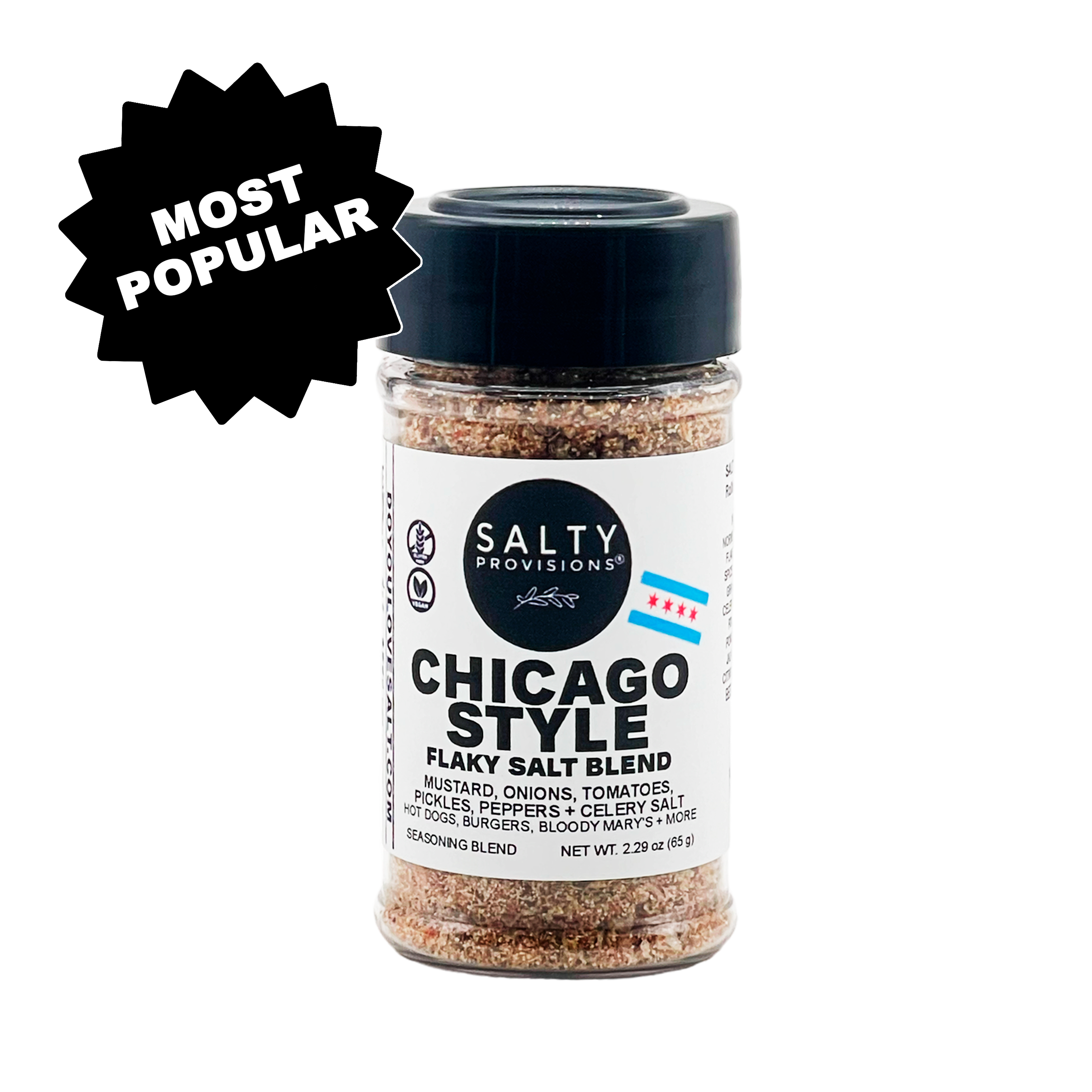 Our CHICAGO STYLE flavor is perfect for Bloody Marys, popcorn, french fries, eggs, chicken, burgers, pork, tomatoes, cucumbers and so much more!