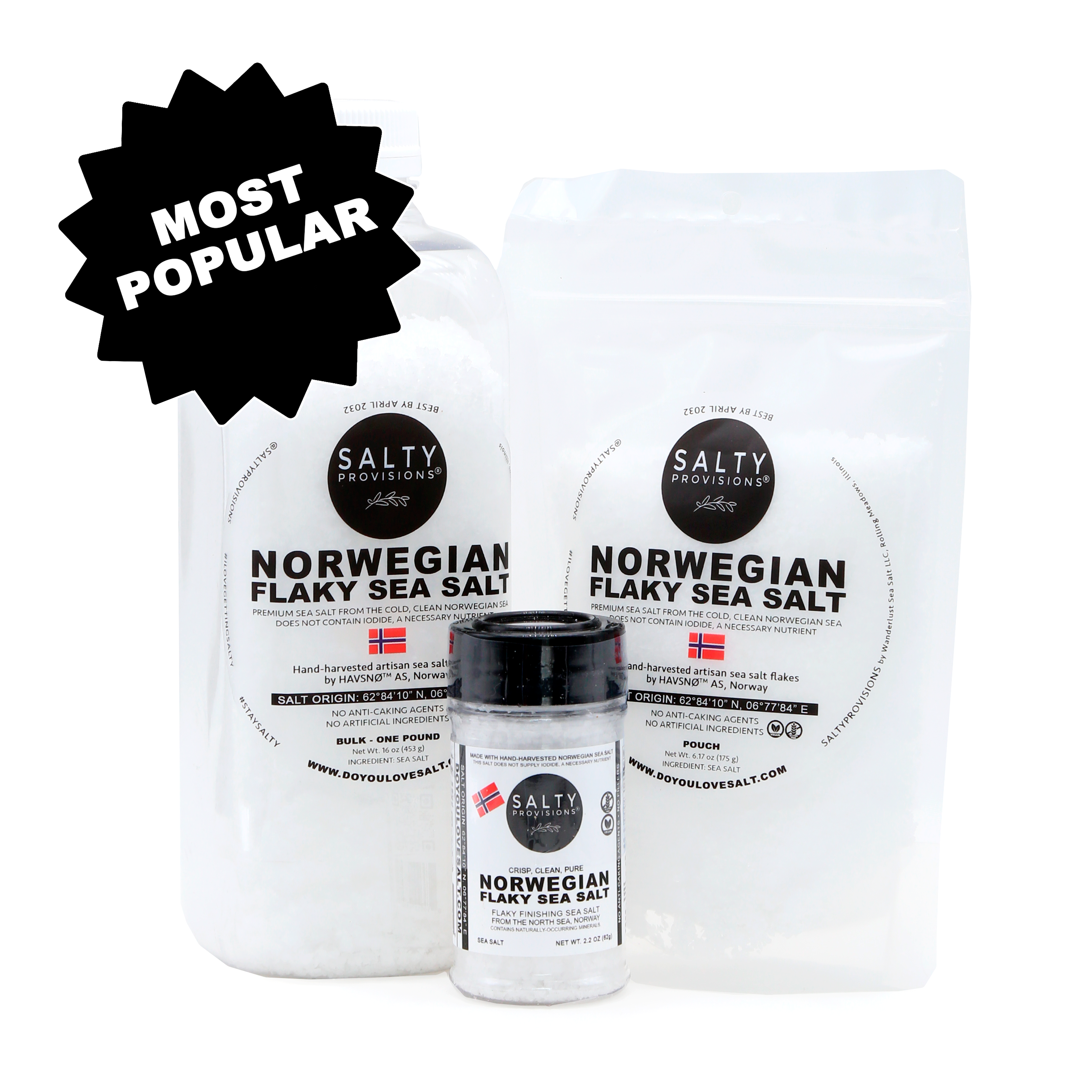Also available: Norwegian Coarse Sea Salt, Norwegian Fine Sea Salt, Norwegian Seaweed Sea Salt, and Rock Flake Salt for grinders.